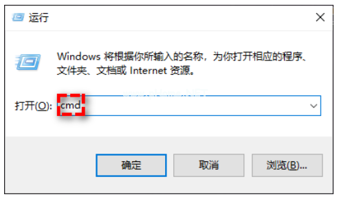 1、將U盤連接到電腦,按下組合鍵“Win+R”,輸入“cmd”后按“回車”。