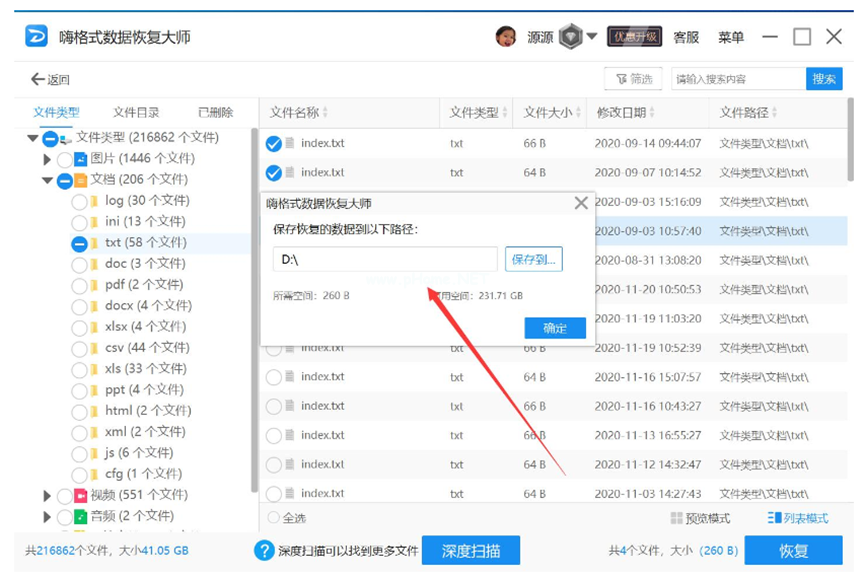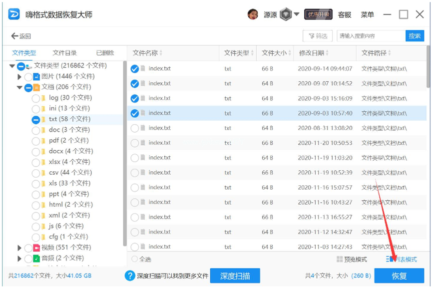 3、使用嗨格式數(shù)據(jù)恢復(fù)大師進行恢復(fù)