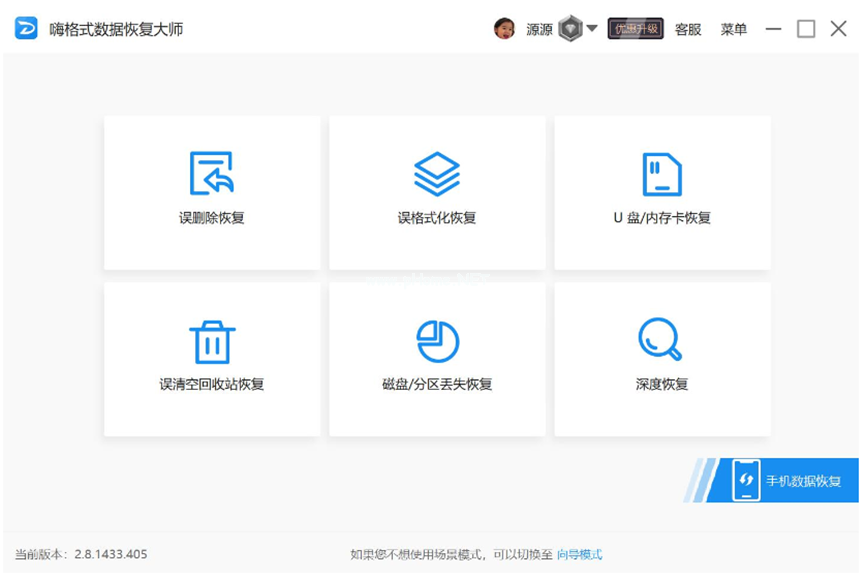 1、運行嗨格式數(shù)據(jù)恢復(fù)大師,選擇需要的恢復(fù)模式。