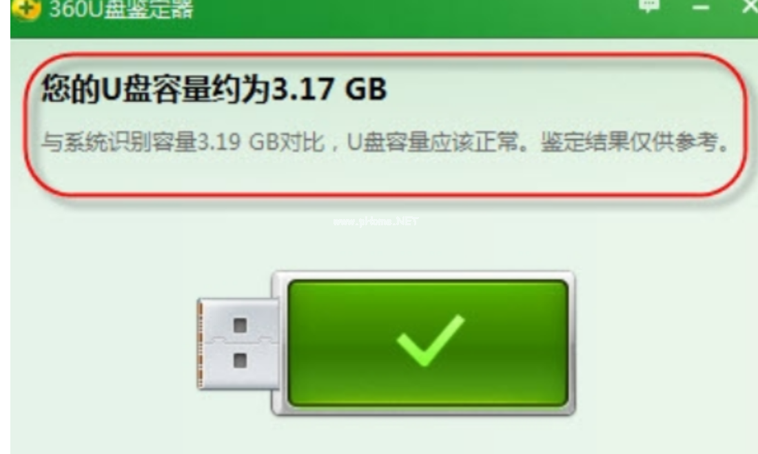 4、鑒定完畢,顯示出U盤(pán)的容量。