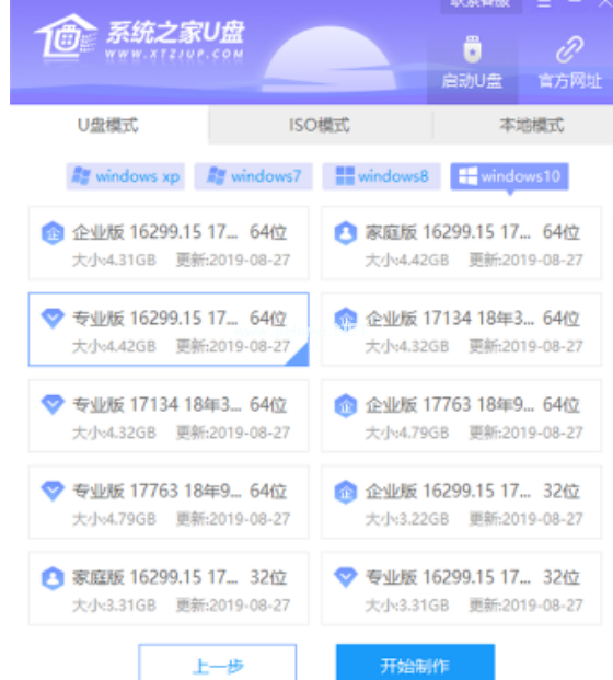 3、接著就進(jìn)入了選擇系統(tǒng)的界面,在這里選擇需要安裝的系統(tǒng)版本,然后點(diǎn)擊開始制作。