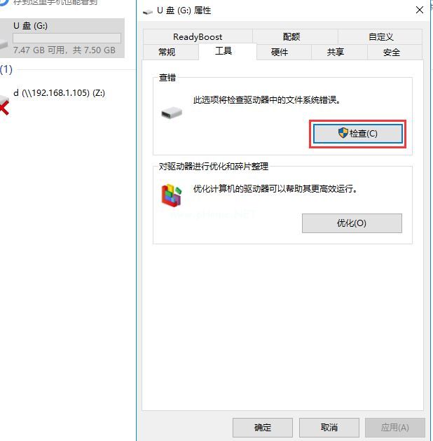 2、在打開(kāi)的屬性窗口點(diǎn)擊工具選項(xiàng)卡,然后在工具選項(xiàng)卡點(diǎn)擊檢查。