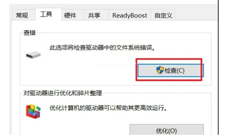 2、點選【工具】—【檢查】,系統(tǒng)將開始掃描檢查磁盤;