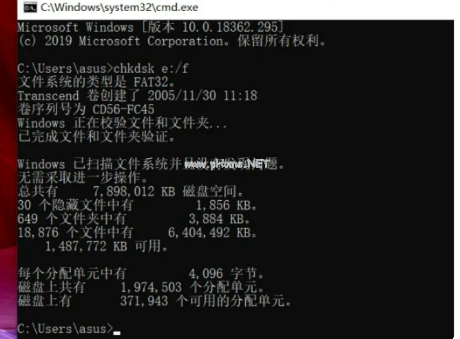 2、在彈出命令提示窗口中,鍵入“chkdsk 驅(qū)動器字母:/f”;