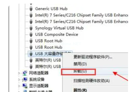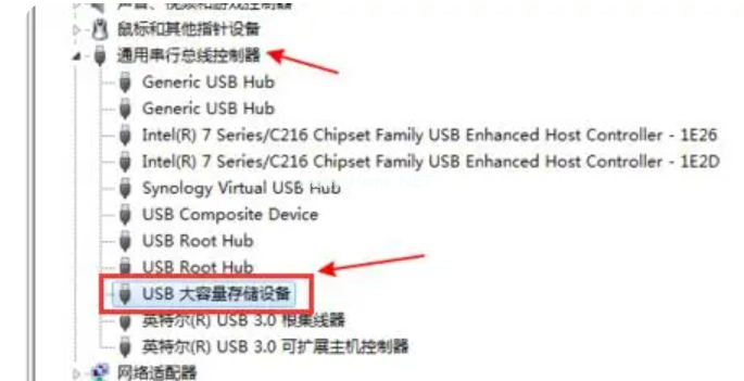 3、在設(shè)備列表中展開(kāi),點(diǎn)擊選擇“USB大容量存儲(chǔ)設(shè)備”;