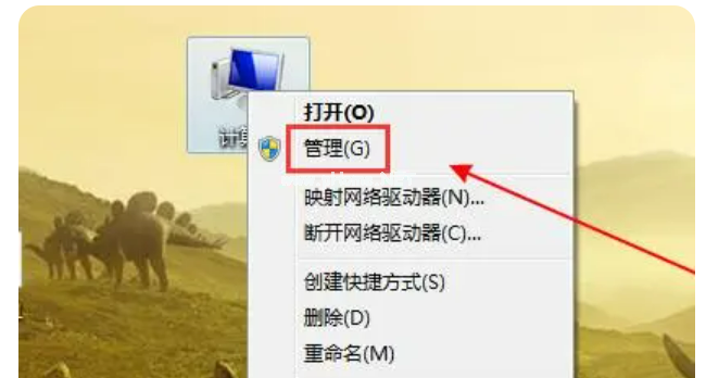 1、點(diǎn)擊鼠標(biāo)右鍵,打開(kāi)“管理”菜單;