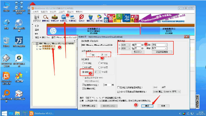 2、然后選擇分區(qū)硬盤,點擊上面的快速分區(qū),在彈出的窗口根據需求,對分區(qū)進行設置。這里需要注意的是分區(qū)類型,如果您的電腦之前是 Win7 系統,那么建議您選擇MBR 分區(qū),如果您的電腦系統之前是 Win10 系統建議您選擇 GUID 分區(qū),同時也要注意電腦 Bios 中引導模式是否正確。