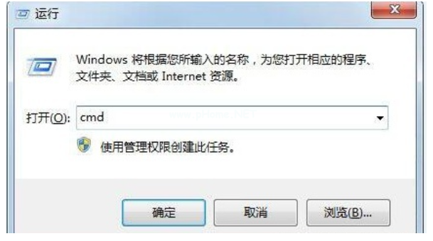 1、打開“運(yùn)行”對話框(按Win+R組合鍵可以打開),輸入“CMD”進(jìn)入MSDOS界面;如圖所示: