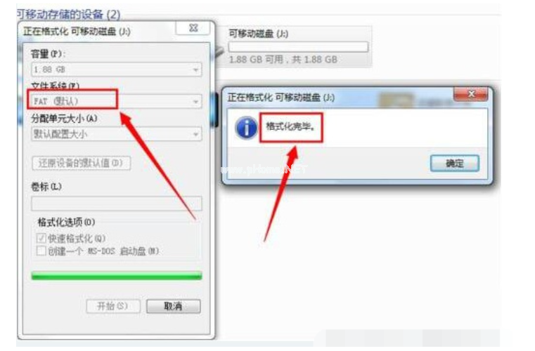 4、當(dāng)出現(xiàn)以上錯(cuò)誤提示時(shí),由于大面板壞道的產(chǎn)生,導(dǎo)致U盤可用容量減少,因此只能使用“Fat”文件系統(tǒng)來格式化U盤。
