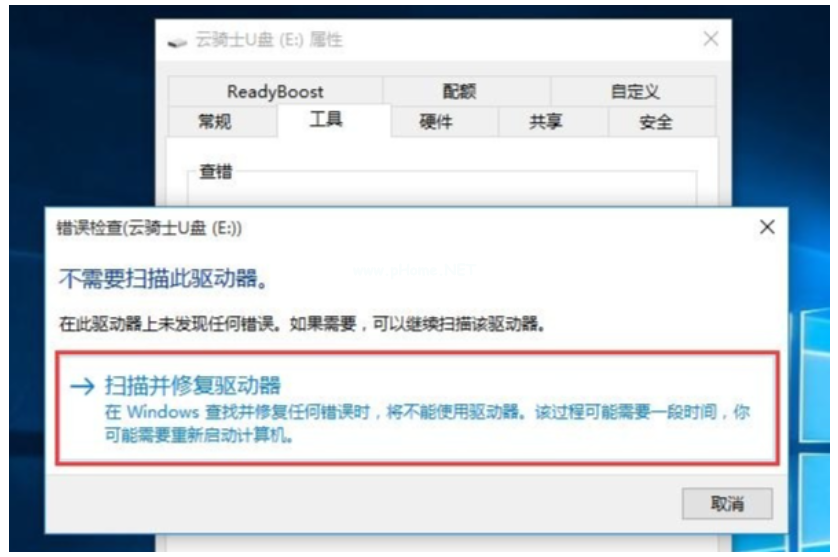 2、打開屬性對話框,選擇“工具”選項(xiàng)卡,點(diǎn)擊“開始檢查”進(jìn)行查錯(cuò)處理操作。
