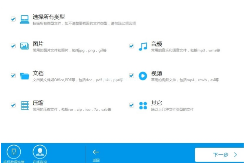 3、勾選您所需要恢復(fù)的東西,點(diǎn)擊“下一步”。