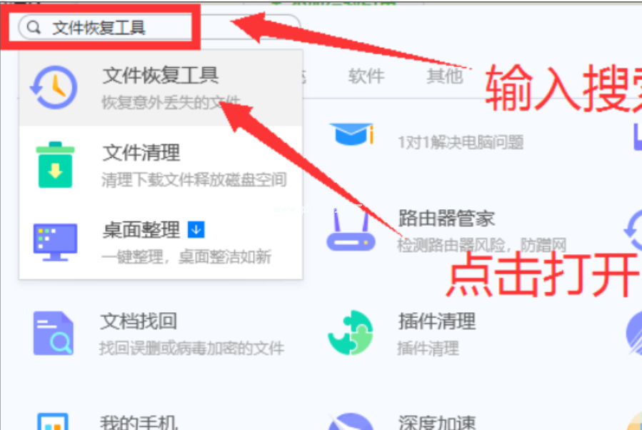4、在工具箱的搜索框中輸入“文件恢復(fù)工具”,搜索找到文件恢復(fù)工具,點擊它。