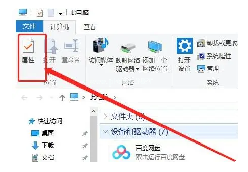 1、先將U盤插入計算機,打開電腦中的“此電腦”,點擊其中的“屬性”;