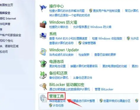 2、然后在系統(tǒng)和安全中,點擊進入管理工具;