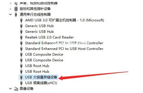 7、再插入USB閃存驅(qū)動器,等待掃描完成,通用串行總控制器顯示“USB大容量存儲設(shè)備”即可。