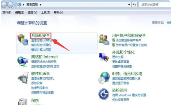 1、需要我們先打開電腦控制面板,點擊進入“系統(tǒng)和安全”;