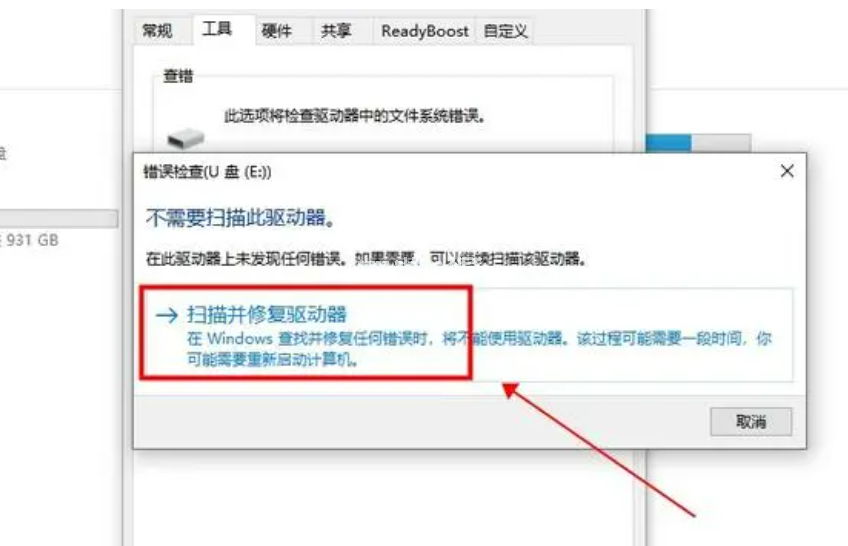 3、在彈出的窗口中,點擊“掃描并恢復驅(qū)動器”進行掃描修復即可。