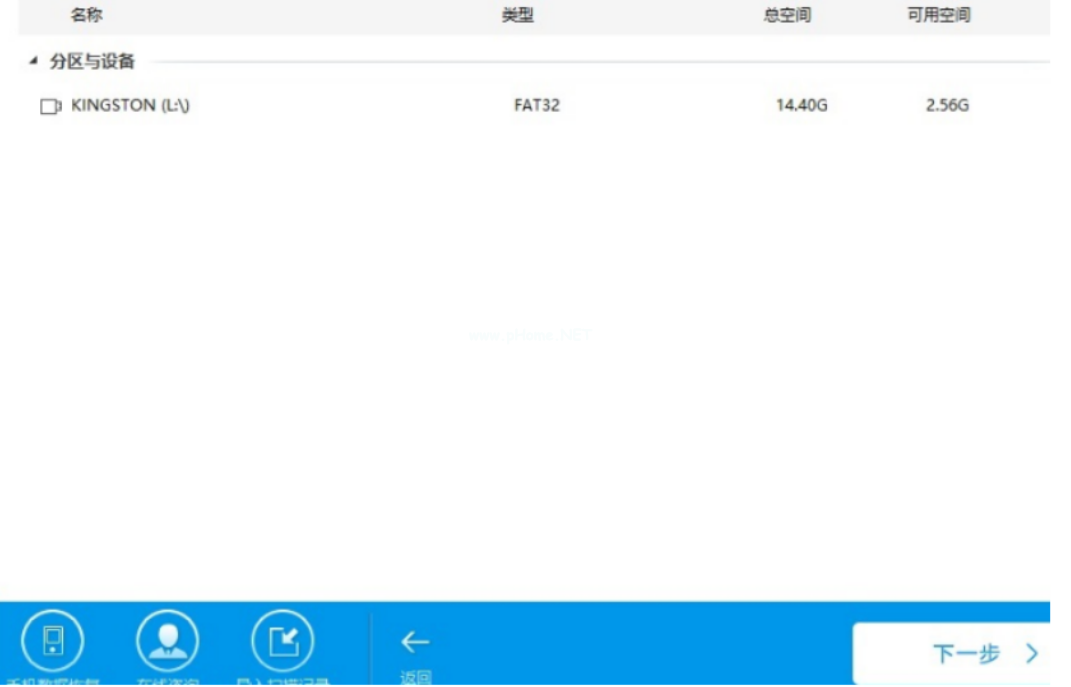2、選擇頁面的u盤,點(diǎn)擊“下一步”。