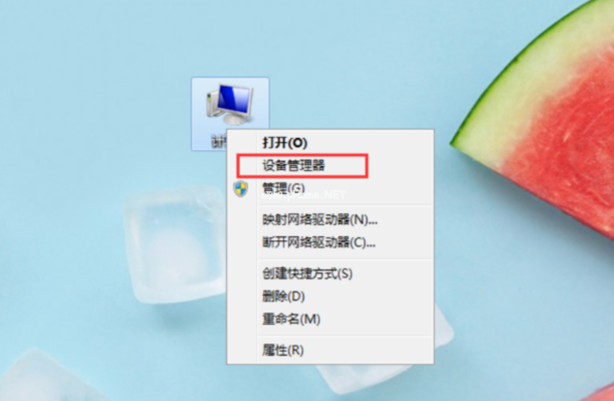 1、首先打開電腦主界面,然后右鍵點(diǎn)擊“計算機(jī)”,接下來在彈出的菜單中點(diǎn)擊“設(shè)備管理器”選項(xiàng)。