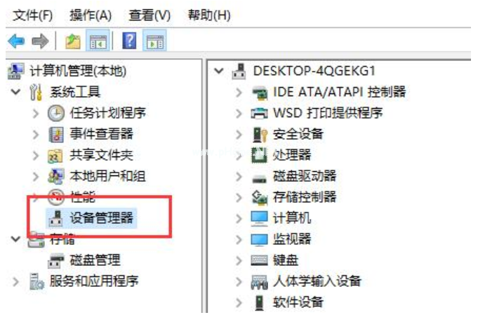2、找到計算機(jī)管理下方的“設(shè)備管理器”,點(diǎn)擊進(jìn)入。