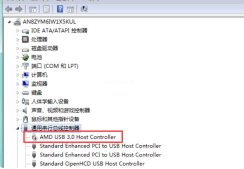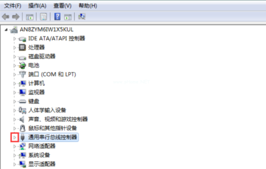2、進(jìn)入設(shè)備管理器界面之后,選擇點(diǎn)擊“通用串行總線控制器”左側(cè)的“小三角”。