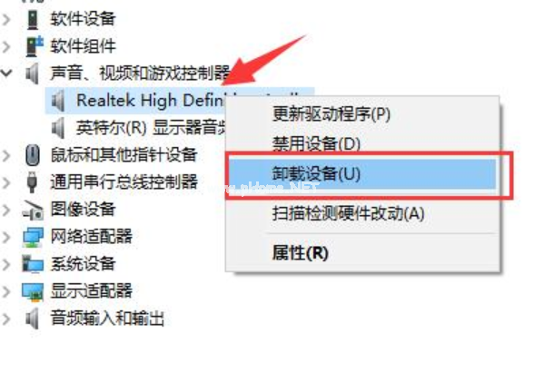 3、右鍵選中需要重裝的驅(qū)動,點(diǎn)擊“卸載設(shè)備”