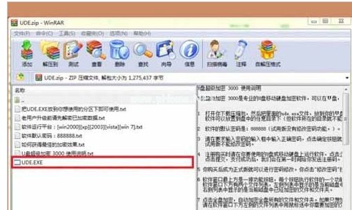 1、下載的U盤超級(jí)加密3000的壓縮包打開(kāi),把里面的ude.exe文件放到需要加密的U盤里。