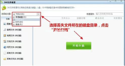 總結(jié):以上就是360數(shù)據(jù)恢復(fù)工具使用的方法,可以點(diǎn)擊磁盤(pán)掃描進(jìn)行文件恢復(fù)。