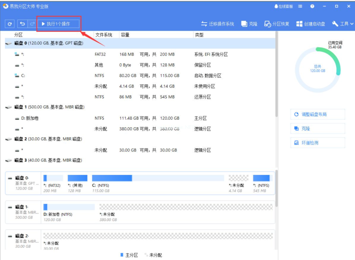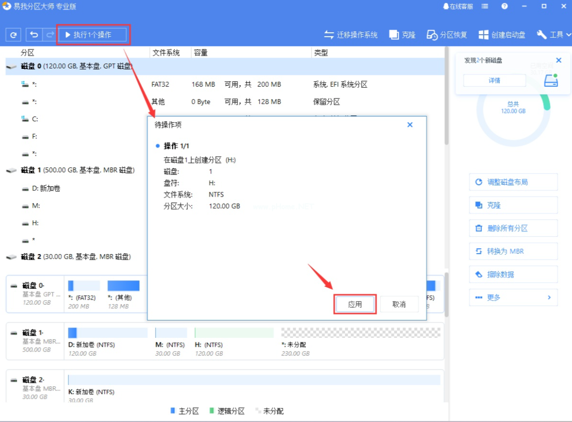 3、確定要執(zhí)行操作時(shí),點(diǎn)擊軟件左上角的待執(zhí)行操作列表,選擇“應(yīng)用”以執(zhí)行該項(xiàng)操作。