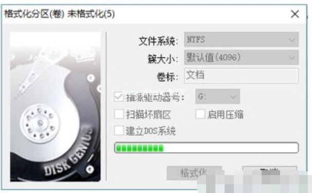 5、等待分區(qū)的格式化。大約需要幾分鐘的時(shí)間。
