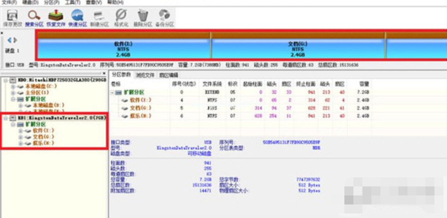 方法三:使用DiskGenius工具給u盤分區(qū)