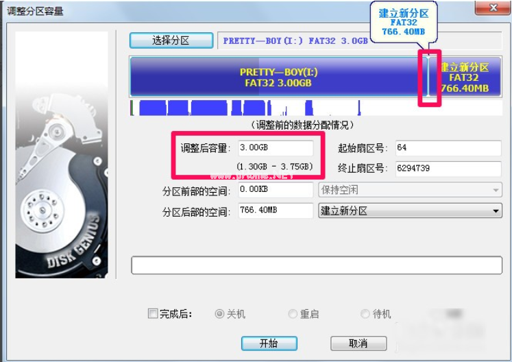 7、diskgenius設置好容量之后我們點擊開始,等diskgenius合并分區(qū)處理完之后就可以了。