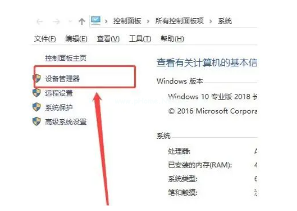 2、在系統(tǒng)屬性頁面中,點擊左側(cè)“設(shè)備管理器”。