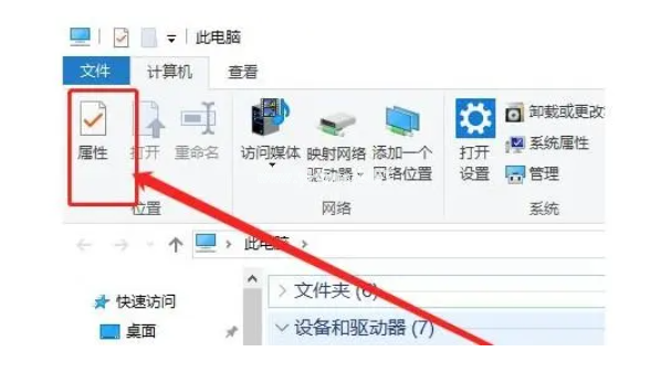 1、將U盤接入電腦之后,打開此電腦,點擊左上角“屬性”。