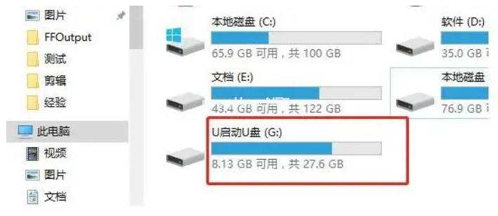 6、最后我們重新插入U盤,等待掃描完成,就會發(fā)現(xiàn)電腦可以成功顯示U盤并讀取了。