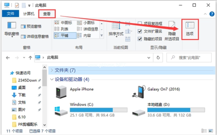 1、其實U盤無法讀取,還有可能是不小心被隱藏了,將U盤插入電腦,點擊此電腦-查看-選項。