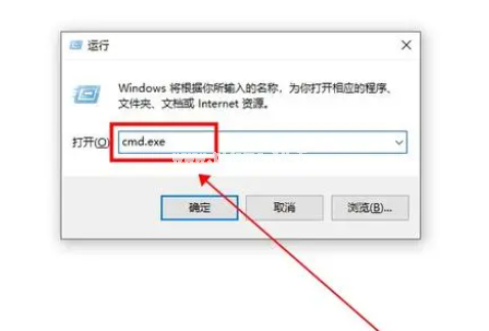 2、然后在運行窗口中,輸入“cmd.exe”并點擊確定。
