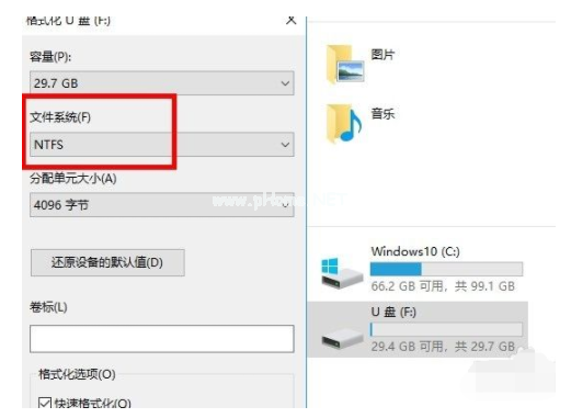 6、再次回到U盤屬性窗口中,就可以發(fā)現(xiàn)U盤的文件系統(tǒng)已經(jīng)成功轉(zhuǎn)換成NTFS格式了。