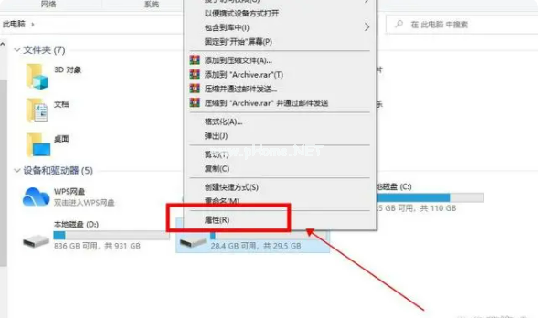 步驟2:接著找到U盤圖標(biāo),鼠標(biāo)右鍵點擊U盤,在彈出選項中選擇“屬性”;