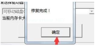 3.當(dāng)出現(xiàn)修復(fù)完成的提示,點擊確定,重新插拔U盤即可開始正常使用。