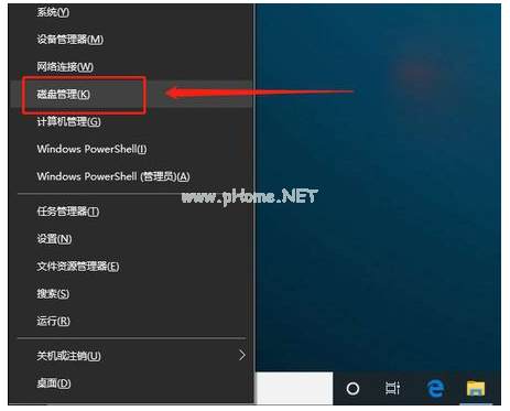 1、修復(fù)u盤的方法,我們首先插入u盤,同時按下【win+X】快捷鍵,選中【磁盤管理】打開。