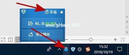 3.點擊下圖中的箭頭處,會彈出一個菜單,選擇“殺毒”: