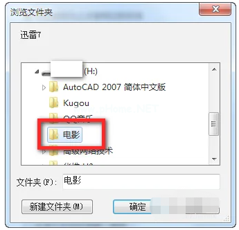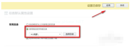 3.這里我們要先選中“使用指定的存儲(chǔ)目錄”,然后在右側(cè)選中U盤的目錄,我在U盤里新建了一個(gè)“電影”文件夾。注意這里一定要勾選指定的存儲(chǔ)目錄,否則無效!