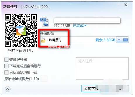 4.然后我們從網(wǎng)站隨便找一部電影下載,在彈出的迅雷下載框中可以看到電影的下載目錄已經(jīng)到了U盤當(dāng)中。設(shè)置成功!