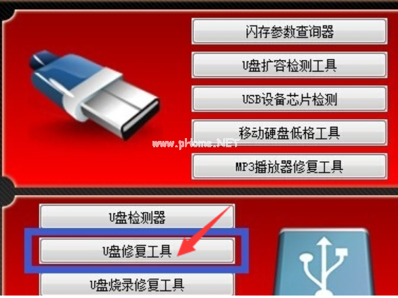 3、點擊“U盤修復(fù)工具”按鈕進(jìn)入U盤量產(chǎn)界面,就可以對U盤執(zhí)行量產(chǎn)操作。