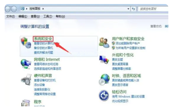 1、打開控制面板,進入“系統(tǒng)和安全”;
