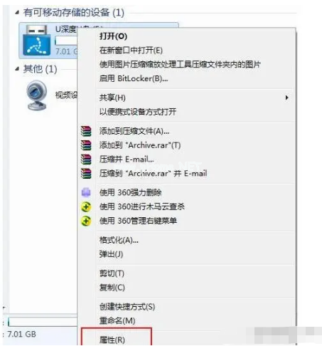 1、 進入我的電腦,鼠標右鍵u盤選擇屬性。