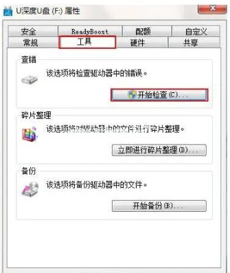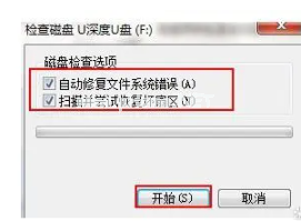 3、 勾選這兩項,點擊“開始”掃描修復u盤文件即可修復解決。