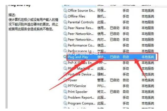 4、找到Plug and Play,看看這個是否開啟,關閉的話點擊開啟就可以啦。