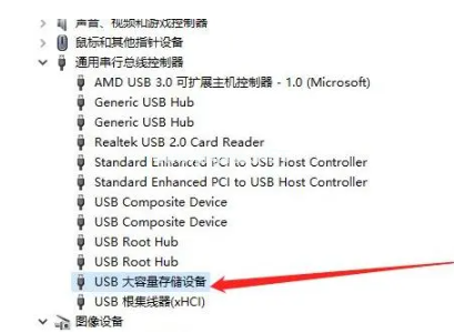 7、再插入USB閃存驅動器,耐心等待掃描完成,通用串行總控制器顯示“USB大容量存儲設備”。